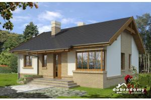 Dom parterowy, przeznaczony dla 3-4-osobowej rodziny. Układ pomieszczeń podzielono na część ogólną i prywatną. W części ogólnej znajduje się wiatrołap z przejściem przez hall do otwartej przestrzeni salonu z jadalnią i kuchnią. Z kuchni dostępne jest pomieszczenie gospodarcze. Możliwe jest również zamknięcie kuchni. Część prywatna składa się z korytarza i dostępnej z niego łazienki oraz dwóch sypialni.